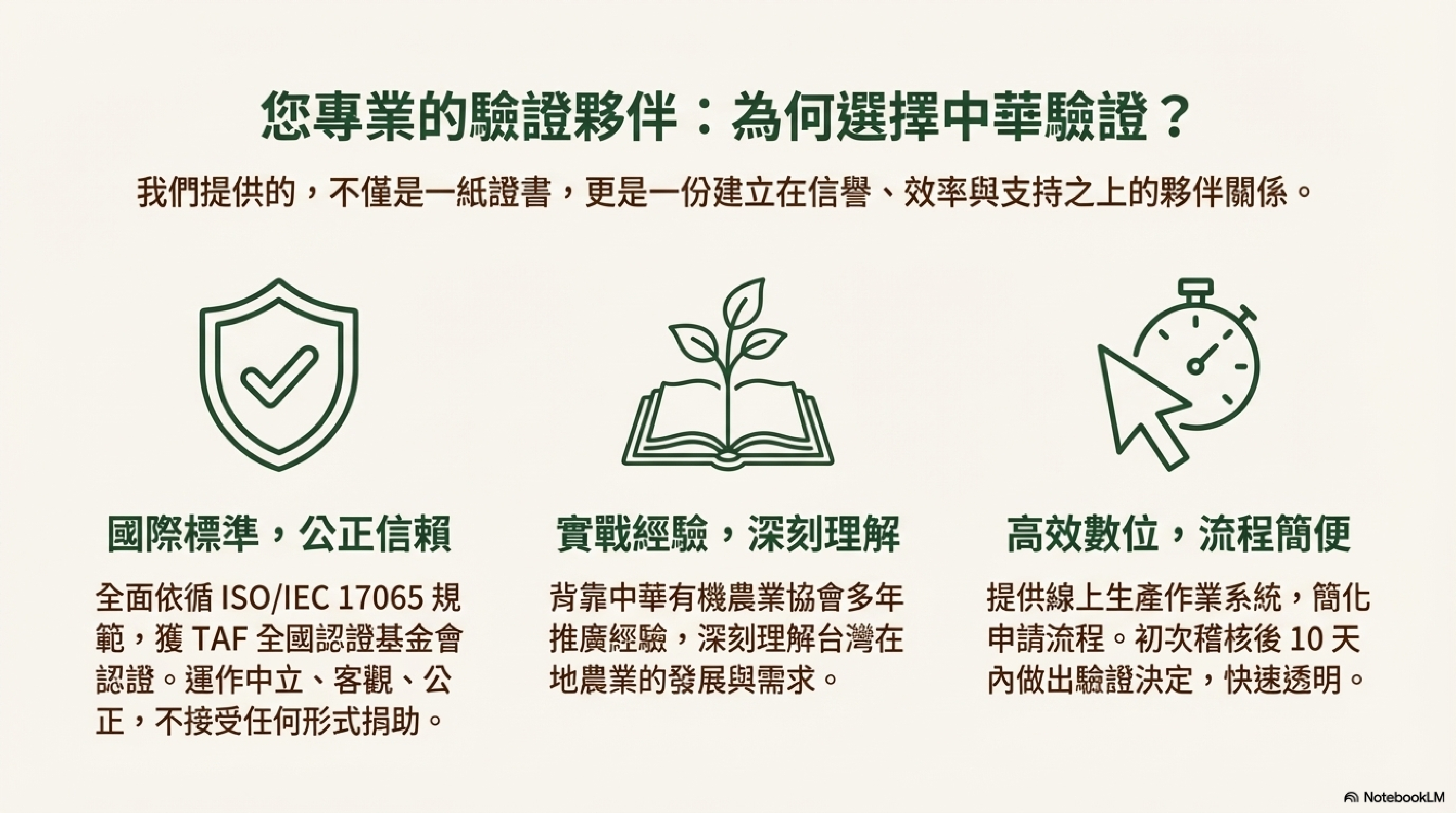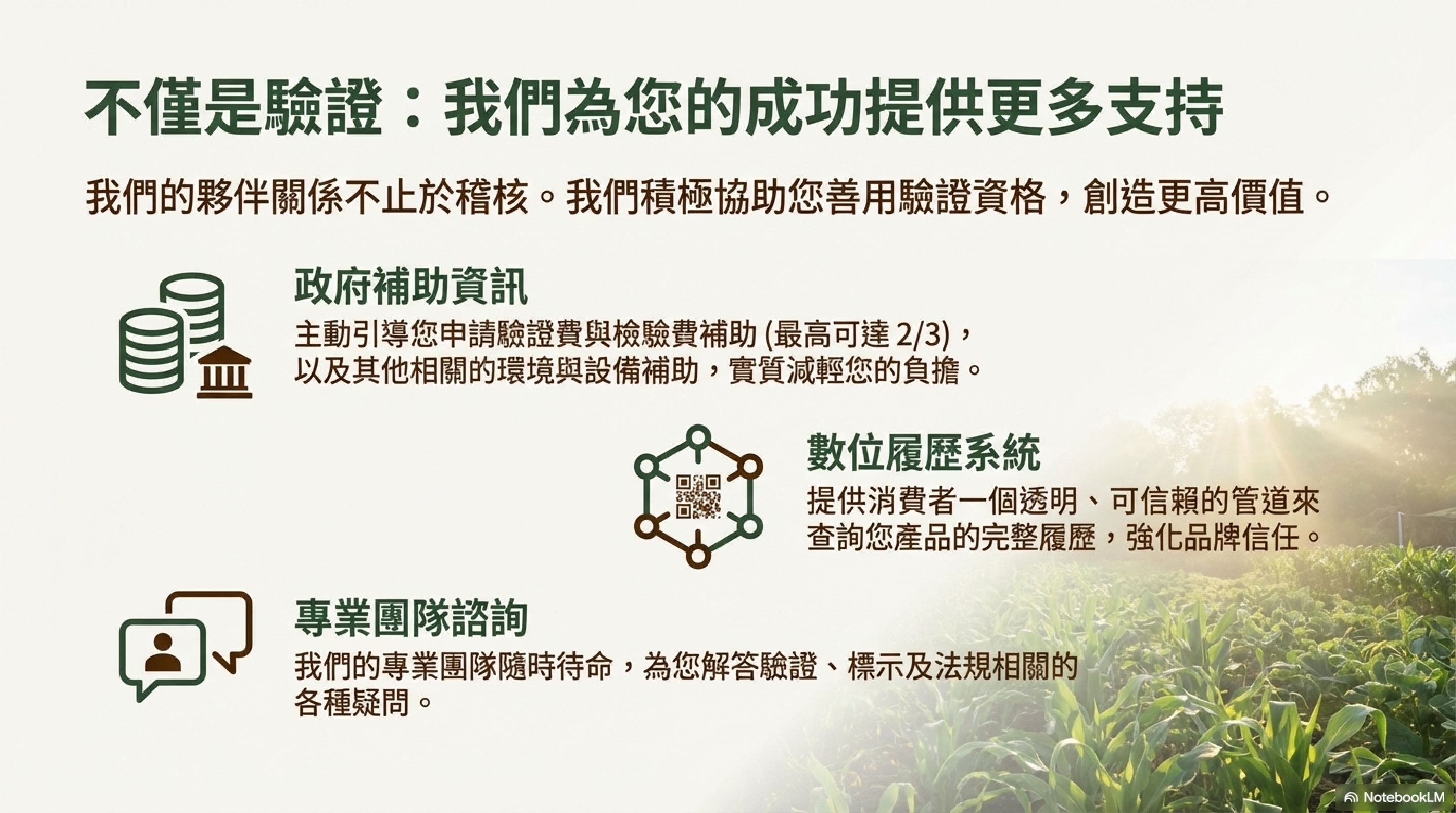 致力於提供台灣農業最完整、最公正、最專業的驗證服務 ✅